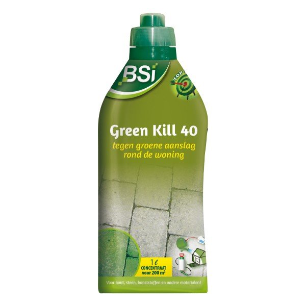 BSI Green Kill 40 is verkrijgbaar in verschillende hoeveelheden. Met deze 1 liter variant kun je tot wel 200 m2 behandelen tegen groene aanslag. Met de 2,5 liter variant kun je tot wel 500 m2 behandelen tegen groene aanslag. BSI Green Kill 40 is heel makkelijk te gebruiken. Je mengt het met water en brengt het vervolgens aan met een gieter of drukspuit. Vervolgens wacht je enkele dagen en is de groene aanslag verdwenen, of je haalt het super makkelijk weg met een borstel of drukreiniger.